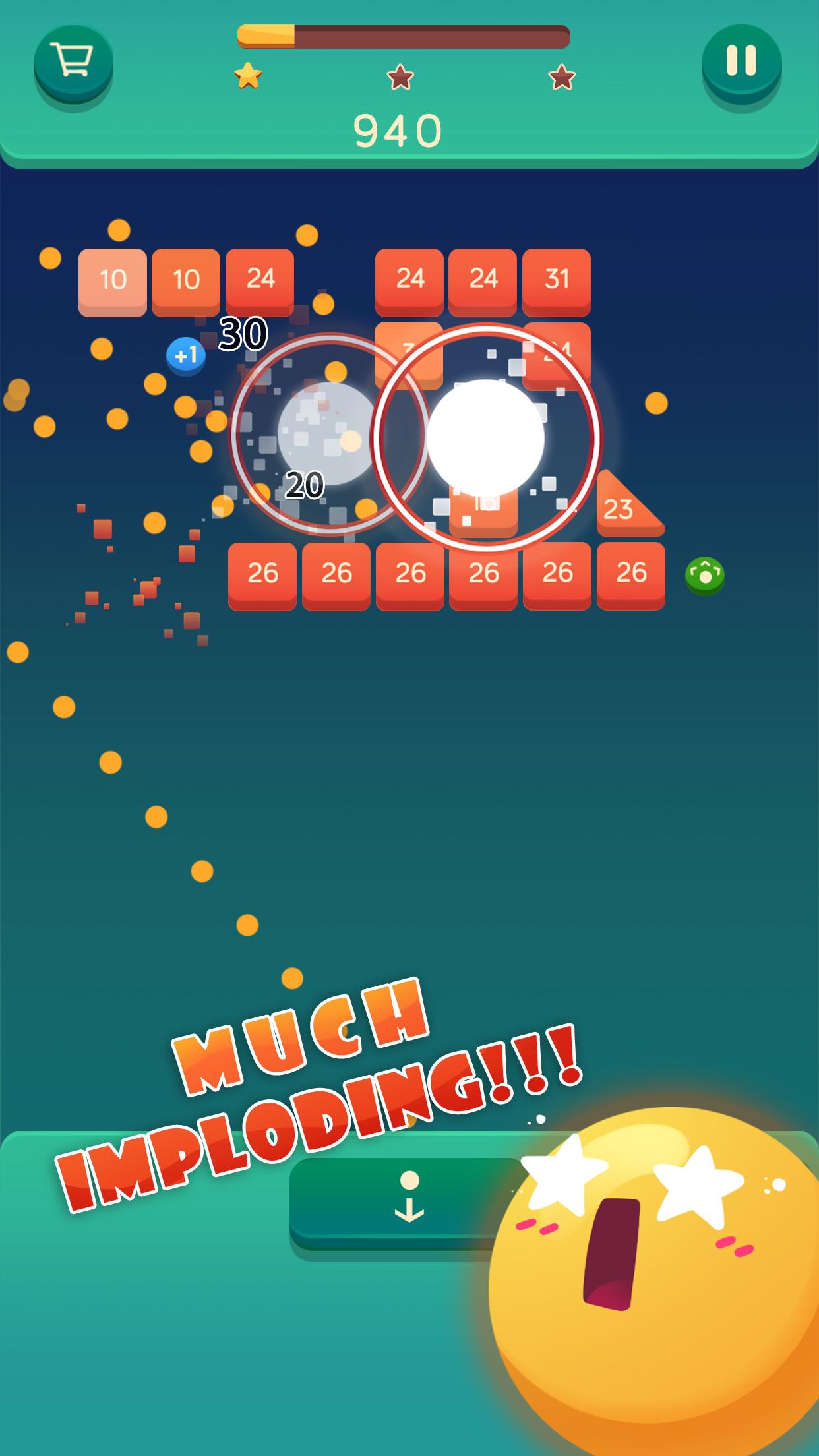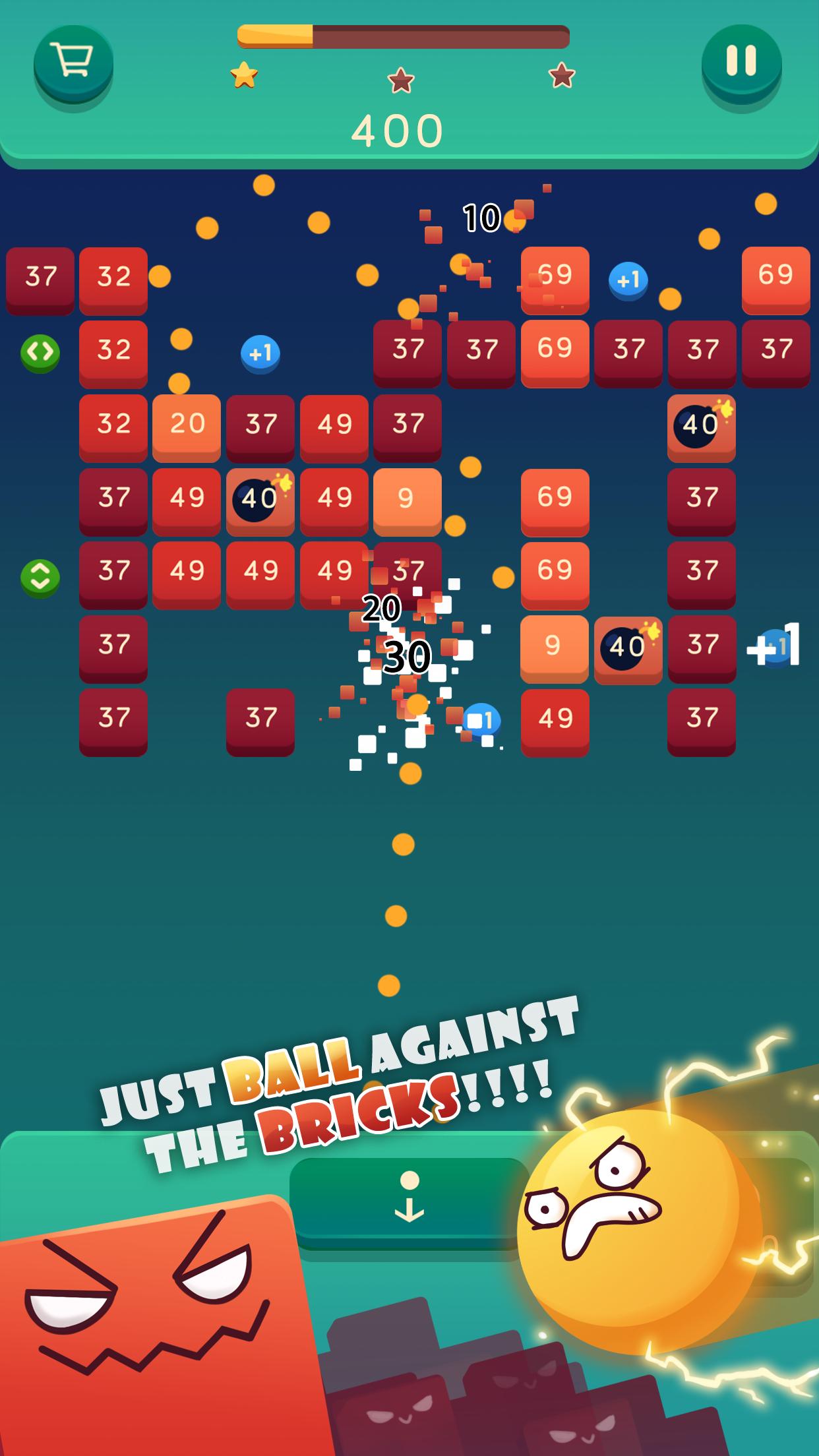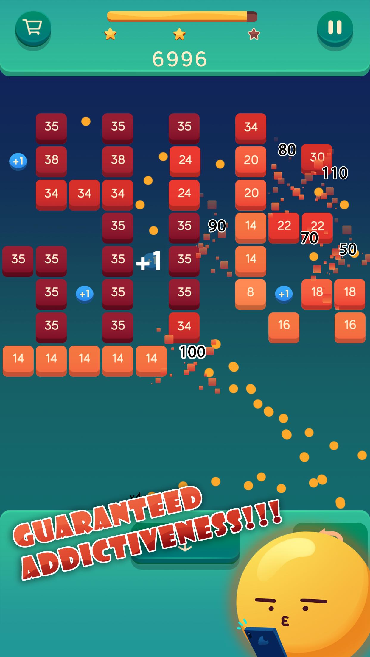 Aim at breaking all bricks by one shoot: swipe your finger and throw balls, make them roll among the bricks, hit items to extend your ball chain, Break the bricks and never let them hit the bottom.