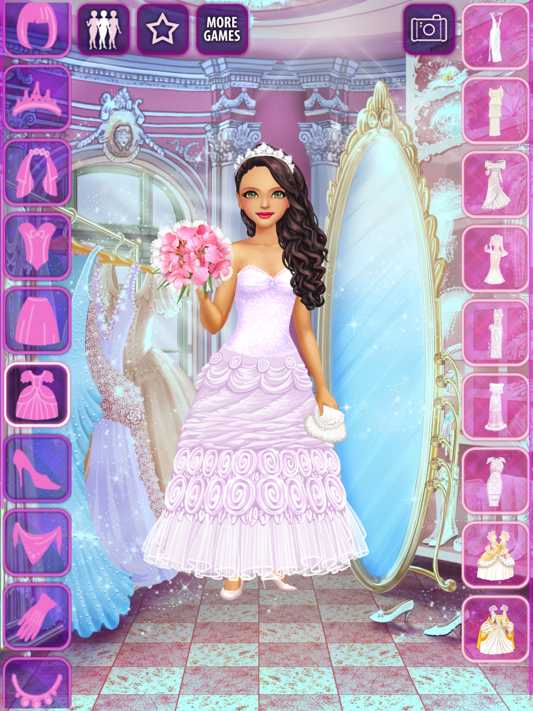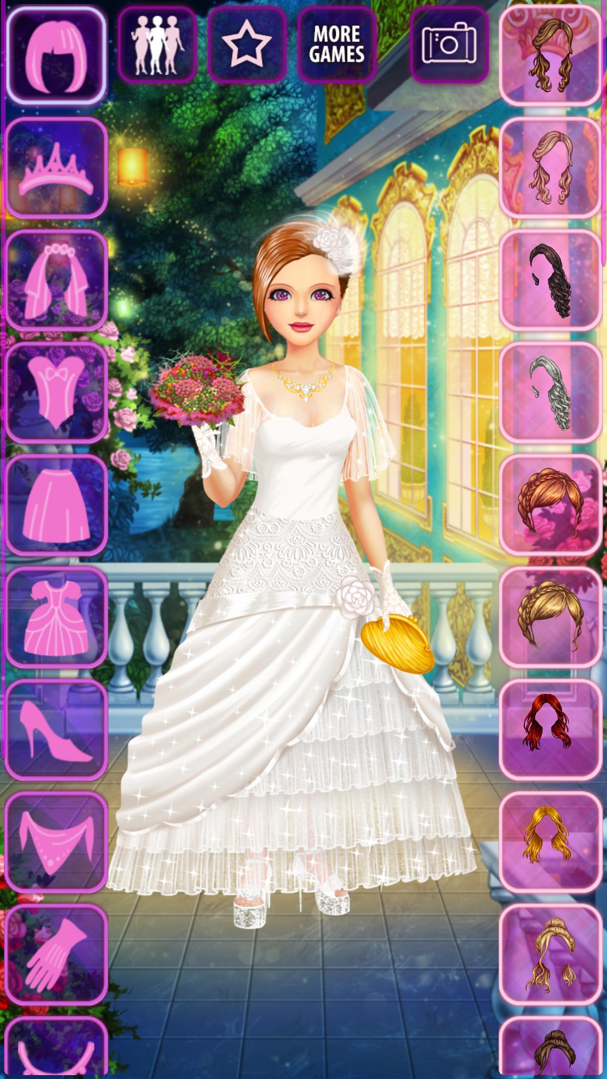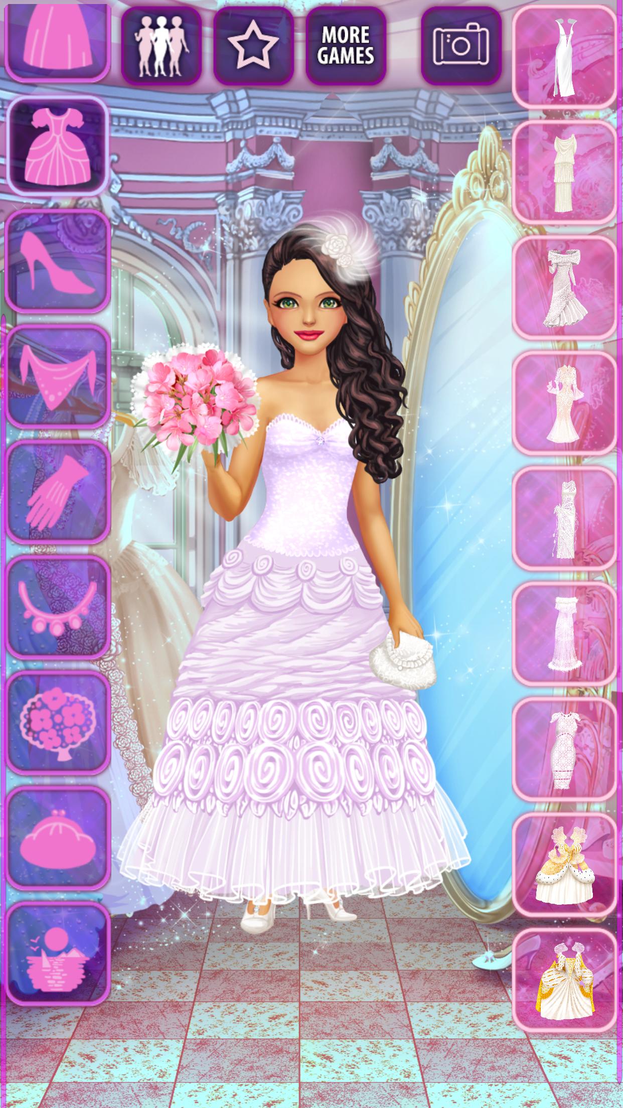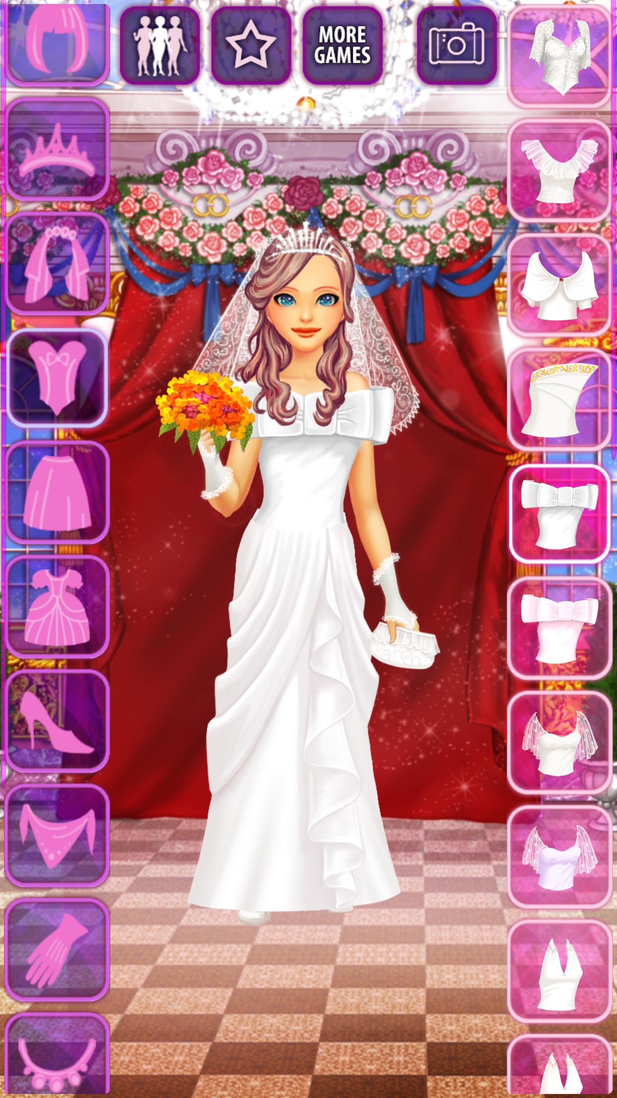 "Bride Model Dress Up" is a makeover / dressup game for Android where you create the most amazing outfits for young brides in a wedding salon.