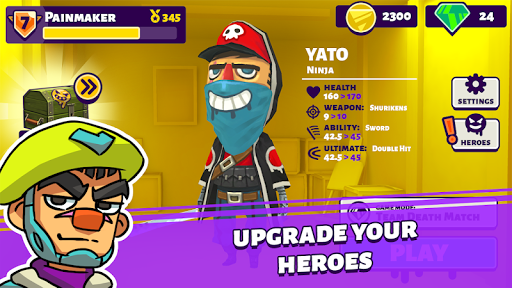 Gather a team of unique heroes: soldiers, tanks, ninjas and others. Everyone has their own skills that will help in the battle royal!