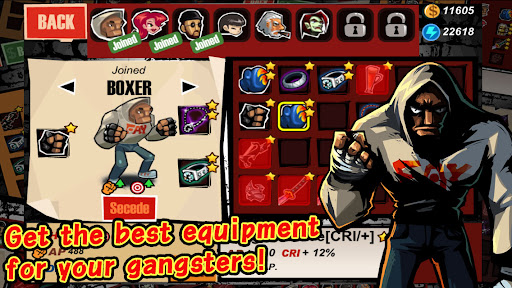 Arm your gangsters, learn varied skills. Get thousands of different grade equipments for each gangster!