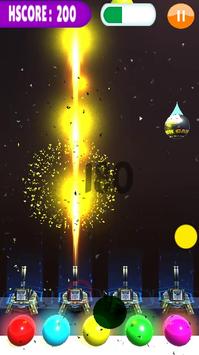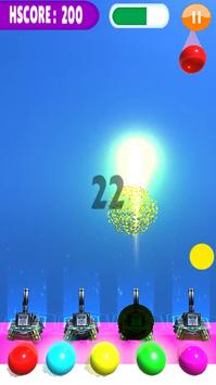 Prevent the colored balls/bubbles from reaching the Turrets at the base by firing them with Laser beams. A bubble is only destroyed by a laser beam if the laser beam's color is same as the ball's color. Change Laser beam color by tapping on bottom colored Balls.