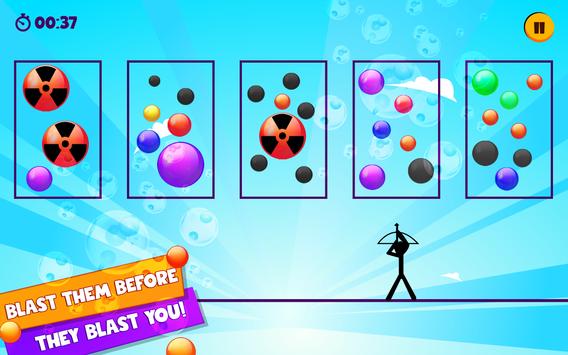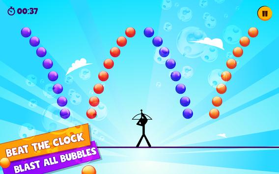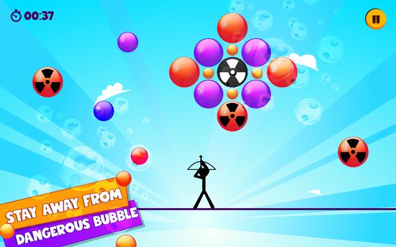 All bubbles need to burst out and blasted before a bubble hits your stickman.