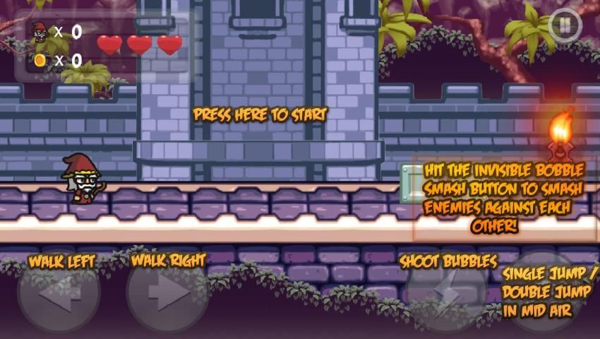 The home castle of Victor got smashed by the evil dead dark forces of Lucia. Meanwhile Victor, also called Bubble Bob, was at the roof hunting some butterflys, cause butterflys can lure dragons. As Lucia´s forces attacked the castle, the evil dead destroyed the entire building. Victor is now up to revenge the kingdom and to destroy the dark forces of Lucia´s evil dead army and hell yeah he is kind of angry.. very angry. The spellbook of the wizard got smashed and destroyed and so our mighty hero needs to start his quest to revenge with his only Spell left, the endless power of super bubbles! Smash bandits and various other enemies against each other, so much fun inside this ultra violent cartoon styled free to play jump&run retro 2d platform adventure!