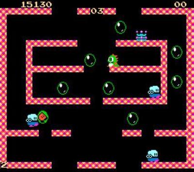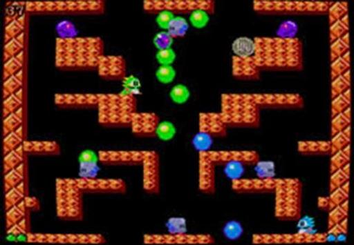 Bubble Bubbles is a platform game , first released in arcades in 1986 and later ported to home systems. The game, starring the twin Bubble Dragons Bub and Bob, tasks players with traveling through one hundred stages, blowing and bursting bubbles, jumping on and off blown bubbles to navigate level obstacles, dodging and eliminating enemies, and collecting a variety of items including some that carry power-ups and significant bonuses. For example, the red shoe allows Bub and Bob to move faster, while wrapped candies cause Bub and Bob to blow bubbles faster, and blow bubbles at greater distances. Other items, such as umbrellas, allow to skip numerous levels, moving closer to the final level. The game became popular and led to a long series of sequels and spin-offs. The main goal of the game is to rescue Bub and Bob's girlfriends from the Cave of Monsters. The game has multiple endings, which depend on the player's performance and discovery of secrets