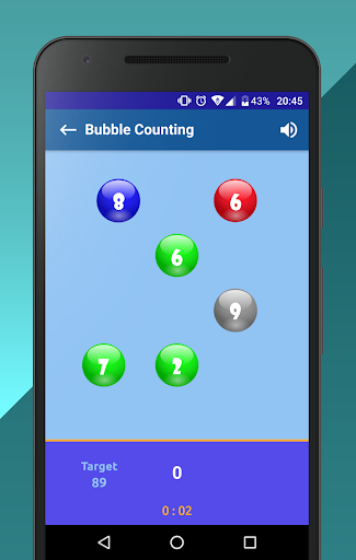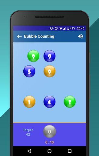 Your task is to get the number indicated on the bottom panel by summing up the numbers on colorful bubbles. If the bottom panel also contains a bubble of a certain color, then you will need to summarize the bubbles of that particular color. Bubbles with numbers change every 2 seconds, so make your decision as quickly as possible.