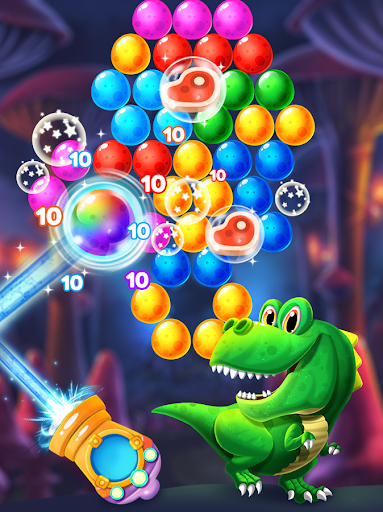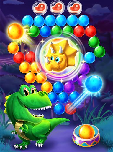 Welcome to the happy life of a dinosaur family, cute dragon babies hiding in the depths of bubble jungle, slide your fingers, eliminate colored bubbles
