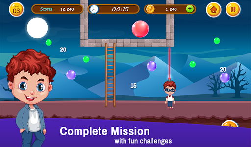 The new bubble shooter arcade game or also known as Buster Bros is remade with new bubble, highly addictive graphics but remaining true to its original form and gameplay struggle free bubble games. Take your character on a red bubble* journey around the world for free through new exciting and carefully 3 made levels. All weapons of the classic, pang, hit and Bubble Trouble are available.