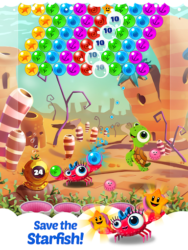 Play through over 370 levels, many underwater worlds, and a variety of fun and challenging game modes including: 'Save the Starfish', 'Collect the Top' and 'Avoid the Current'. Travel through the delightful world of Rockford Reef and help the Bubble Heroes save the Starfish!