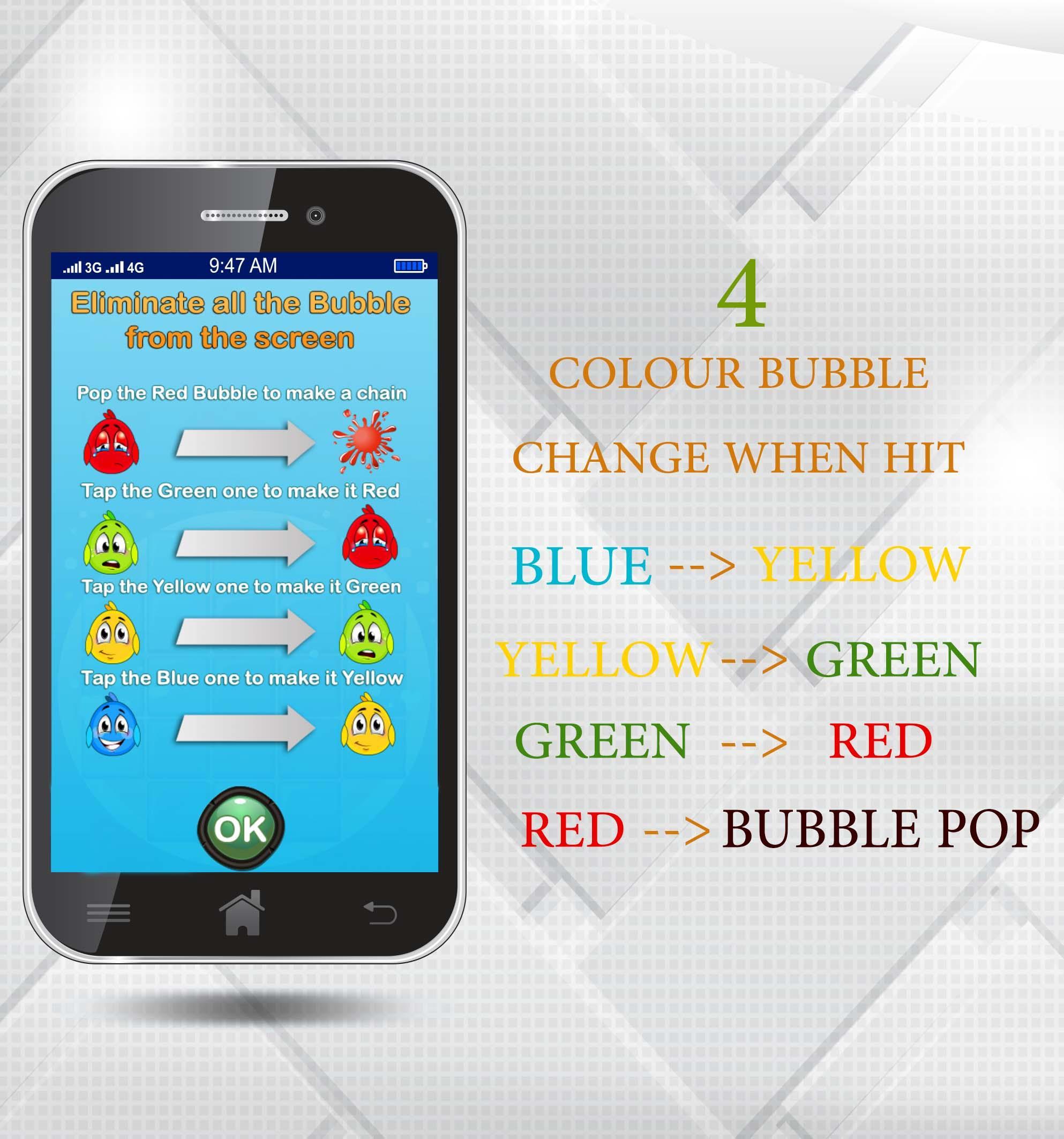 For doing that we have 4 types of bubbles every bubble will be popped with a number of touches: