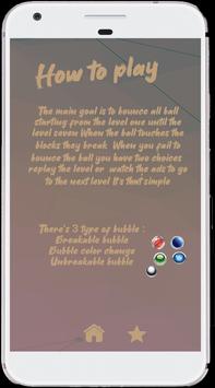 Back up to the blocks Pop, bubble. When the ball touches the bubble or the ball Pop they break. When you fail to bounce or shoot the ball you have to replay the same level or to replay from the start level. that simple!