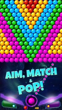 - Match 3 or more bubbles of the same color to pop the group and win points.