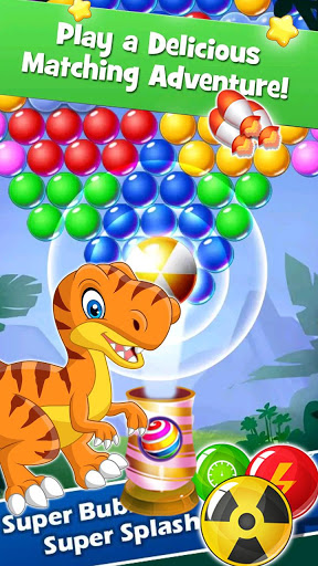 Welcome to the life of a Dino Bubble Primitive, a cute baby designed to hide in the depths of the bubble forest, slide your finger and get rid of colored bubbles. Aim and match the bubble you want to shoot in it, then tap the screen to aim.