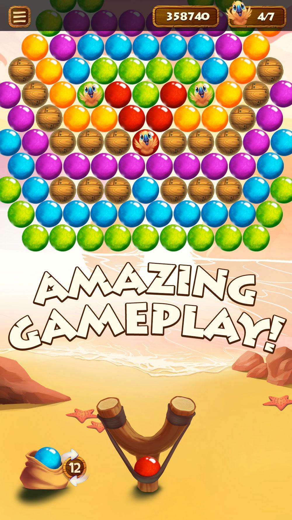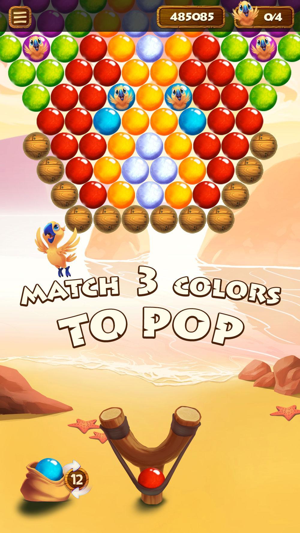 This bubble shooter takes place in a lonely and calming island, filled with bubbles. Free All the cute parrots by matching 3 bubbles of the same color and popping the ones that trap the parrots