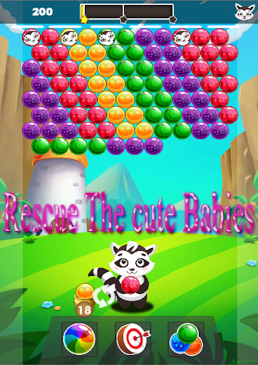 Help to Pet Raccoon Mama to save all of her cubs. Combine 3 or more objects the same color for destroy a bubbles.