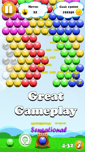 Play a captivating and challenging game in which you shoot bubbles. Form bigger and bigger groups of bubbles of the same color to get as many points as possible. This game has a lot of exciting levels. Play, have fun and discover exciting bonuses and special bubbles.