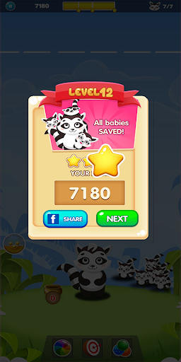 Target of the Bubble Shooter Rescue game is help to Raccoon Mama to save her cubs from bubbles.