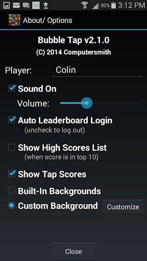 Play either Standard, Color or Challenge mode & use the Bonus Bubble to get you out of a sticky situation. Every 10 games you play earns you a new Bonus Bubble or you can buy packs of 10, 15 or 20 Bonus Bubbles through in-app purchasing.