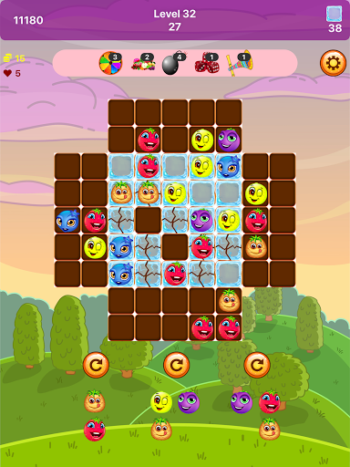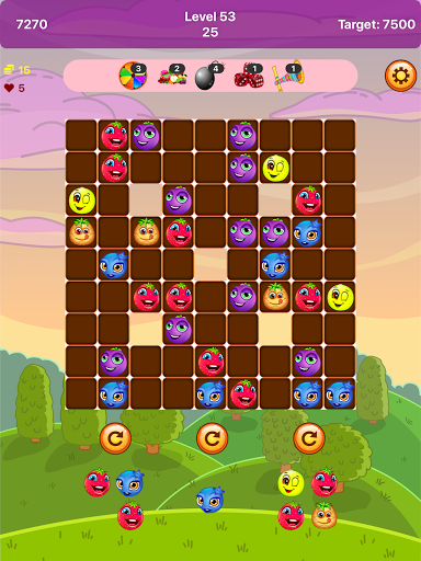 If you can connect 3 or more same colored fruits, those fruits burst and grids become empty.