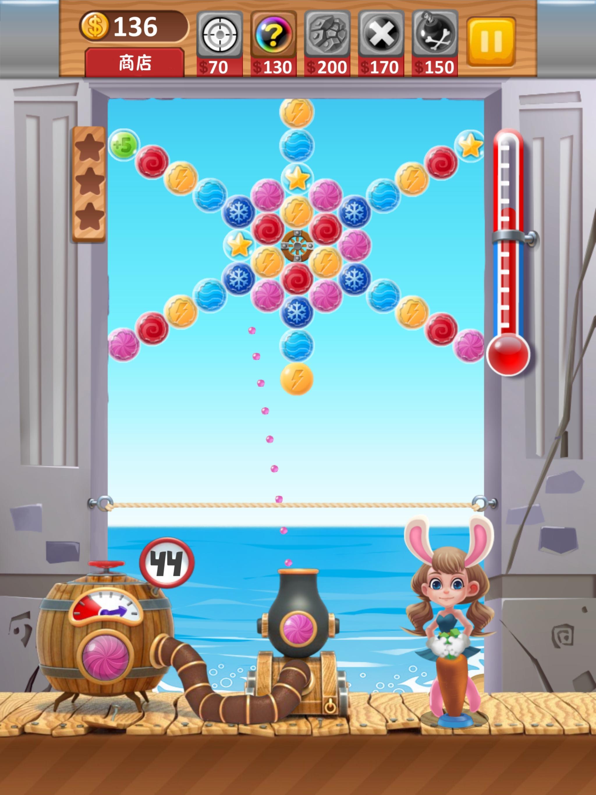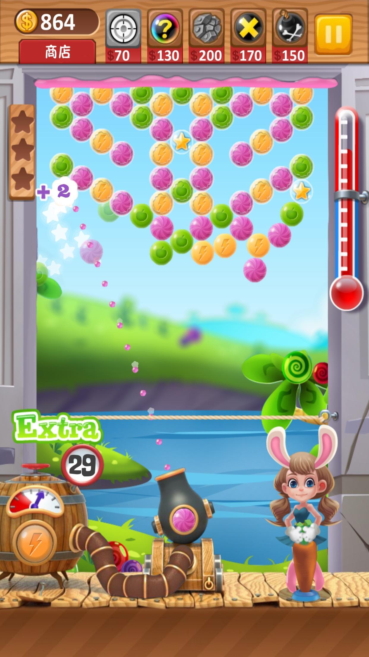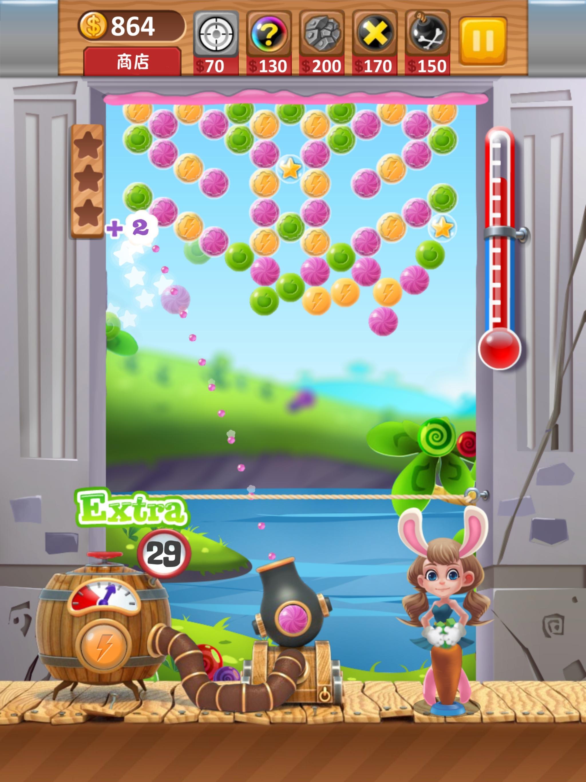 Bubbles shooter shoots candy will impress you! Help the girl to find the treasure. For that, you will need to clear the different levels using the cannon. Shoot and hit groups of three or more equal candies. Try to find the best way to complete each level, collect all 3 stars. Earn gold coins to buy amazing power-ups, make upgrades and many more in this addictive match 3 candy crush game! enjoy it!