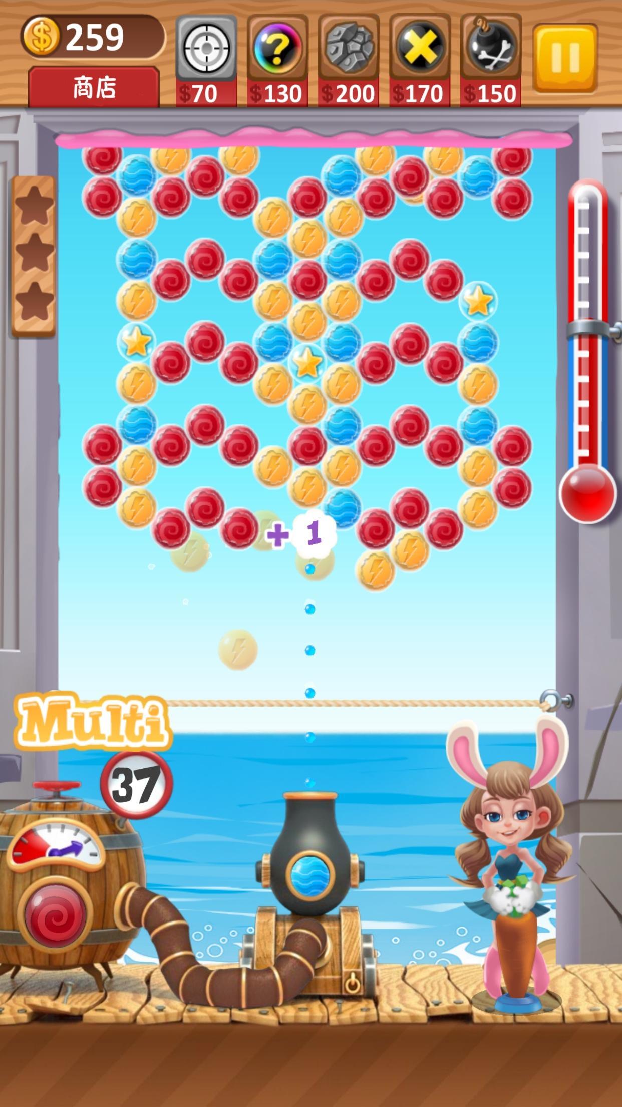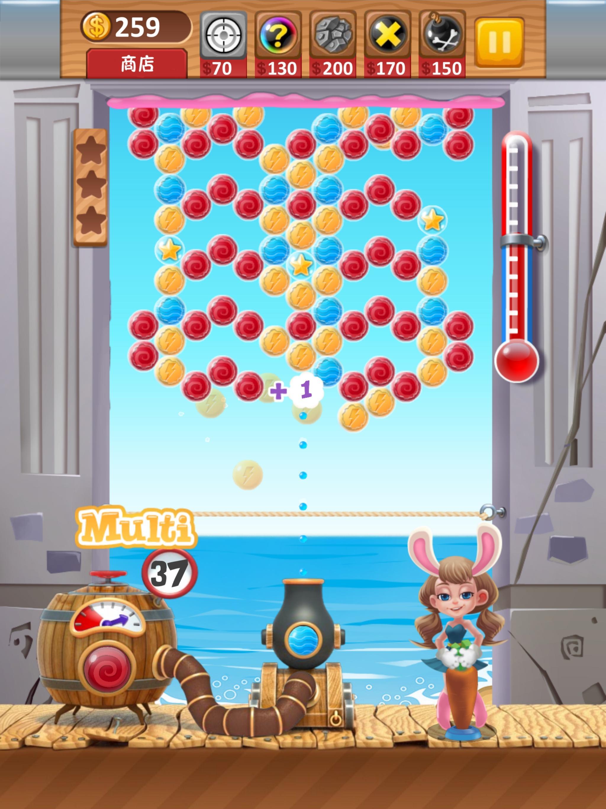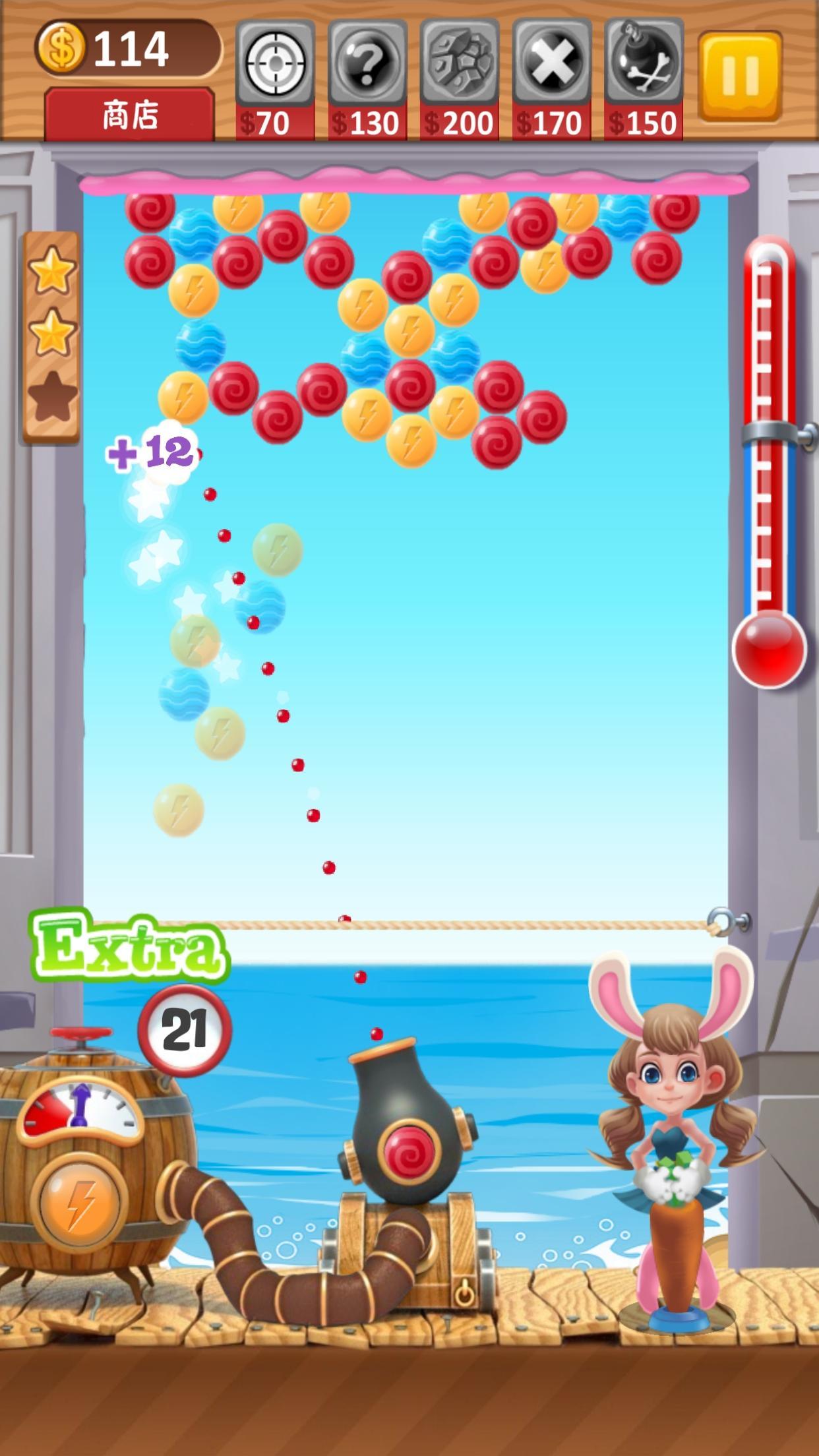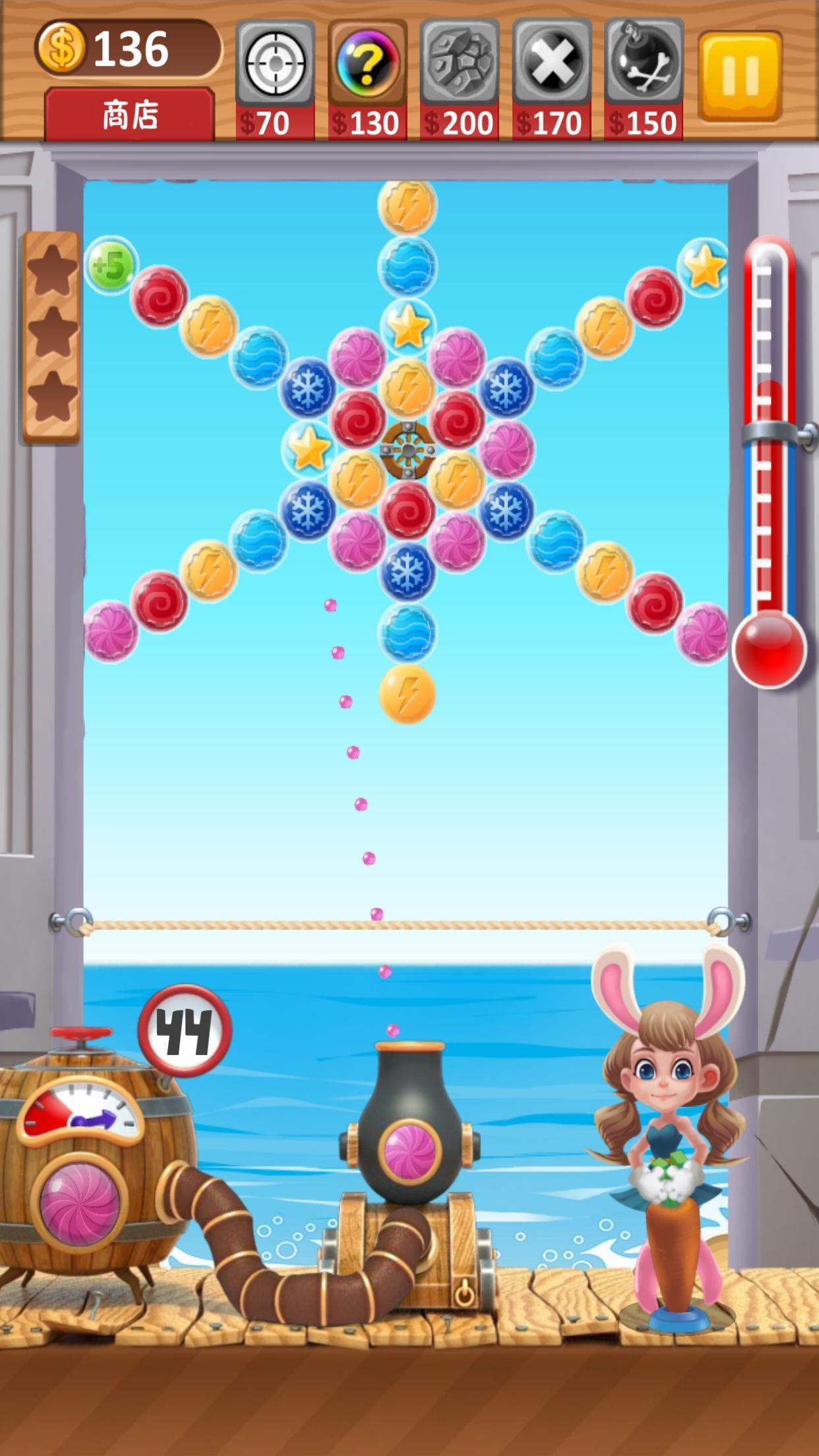 Bubbles shooter shoots candy will impress you! Help the girl to find the treasure. For that, you will need to clear the different levels using the cannon. Shoot and hit groups of three or more equal candies. Try to find the best way to complete each level, collect all 3 stars. Earn gold coins to buy amazing power-ups, make upgrades and many more in this addictive match 3 candy crush game! enjoy it!