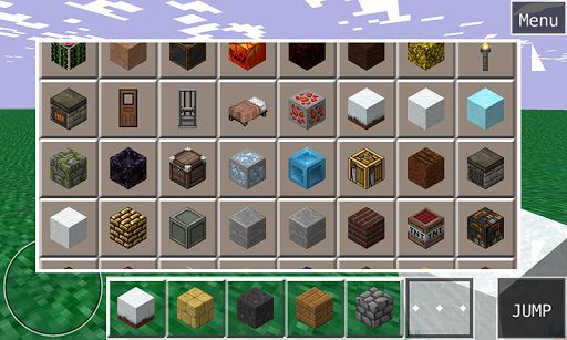 Variety of blocks:Bookshelf, brick, chest, clay, dirt, grass, furnace, glass, stone,dirt, grass,