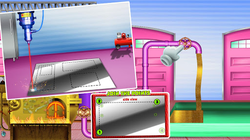Start your engineering works being the owner & manager of bus maker factory. Fill the mold with melted iron to make body of school bus. Assemble the doors, windows & lights. Put up the front body after assembling & crafting the truck engine from scratch. Use water & soap to wash the muddy rusty parts of city bus. Apply paint colors using spray paints to make it look beautiful for customers & passengers. Little repairman! Now it’s time to build, design and assemble engine with pro mechanic skills. Manufacture and assemble the engine in car bonnet to complete factory process.