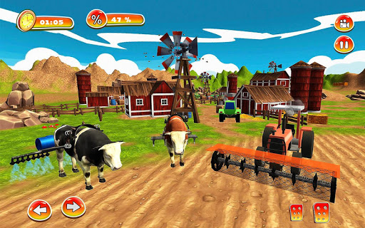 This Bull Farming game is one of the best adventure entertainment games for farming lovers. In this bull cart farming simulator you are the farmer in new games 2017, this is all about the agriculture and prepare the fields for crops and cutting using bull where farming tractor & harvester tractor are not reached. In this 3d game of Village farms you are the farmer and growing crops as a profession and to fulfill the need of you foods for all the seasons. You as a Bull Farming Village farmer need to smooth the barren land and to make perfect surface to grow crops and to provide water in the fields. Cut the crops with the tractor harvesters. Bull farming games are popular so we developed bull farming 3d game simulator for you. Hope you will love it and play all the time in this year!