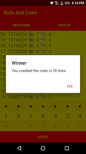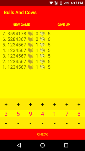The Bulls & Cows - Code Cracker Game is a logical game of guessing the numbers equal to the generated code. The goal is to check the number generated by the app and figure out the code. The Bulls indicate the correct number placed at correct position and the Cows indicate the correct number placed at wrong position. You also have the opportunity to customise your own app layout.
