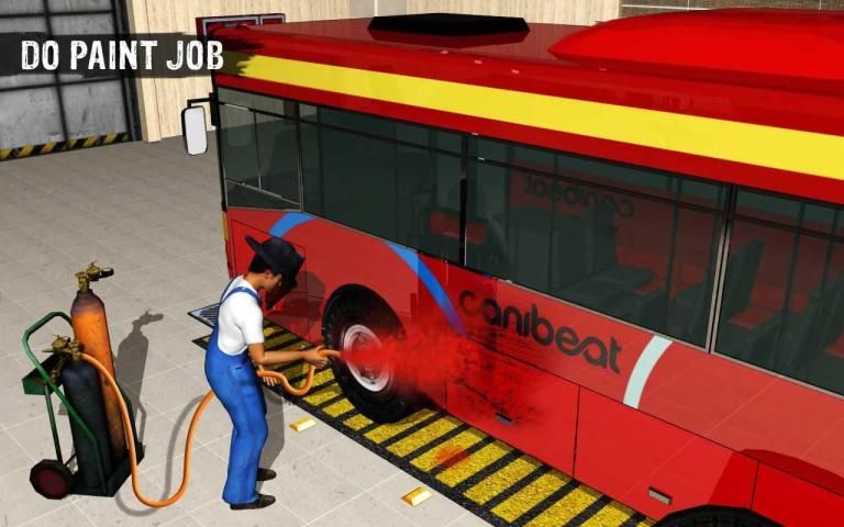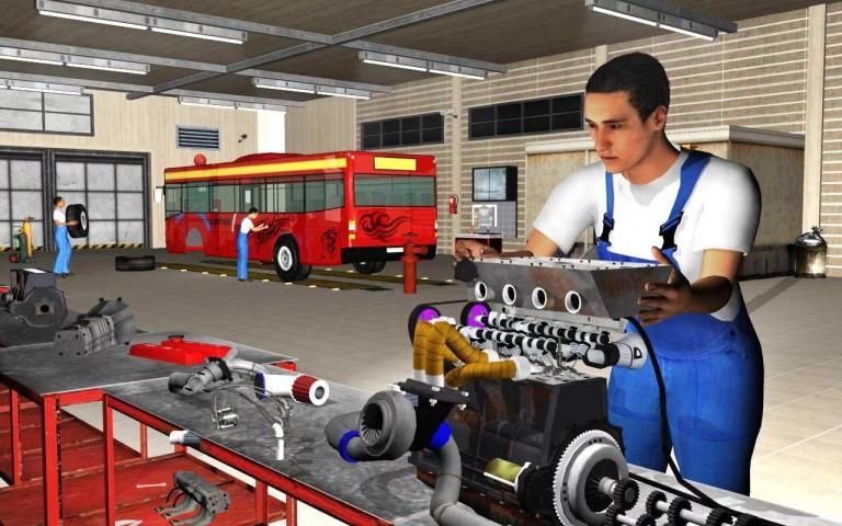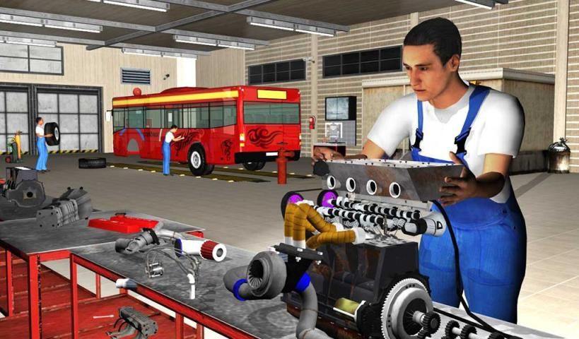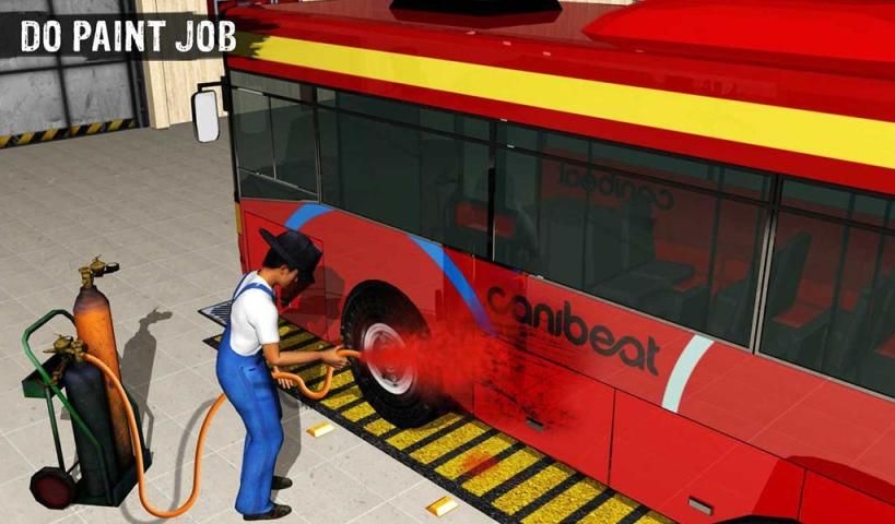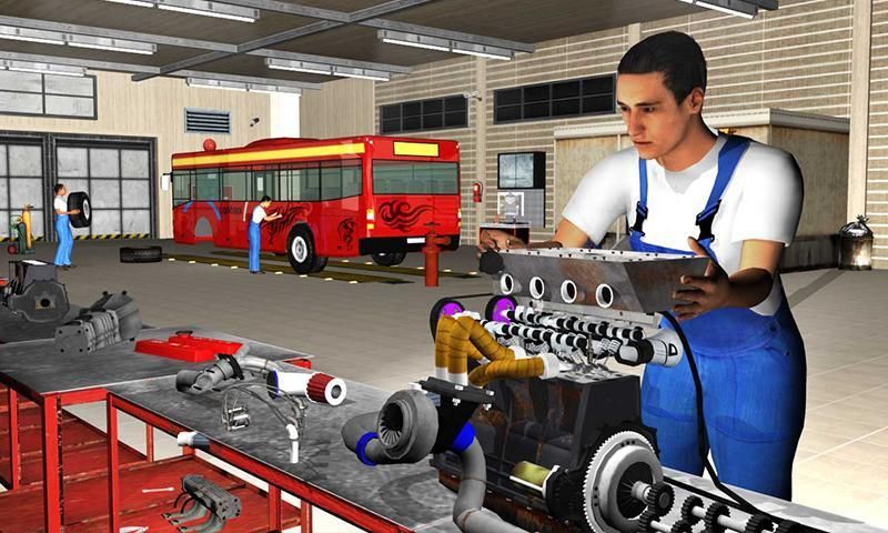 Download Bus Mechanic Garage Repair Shop and be a mobile bus designer and detailed engine repairer using modern machinery in mechanic garage workshop.