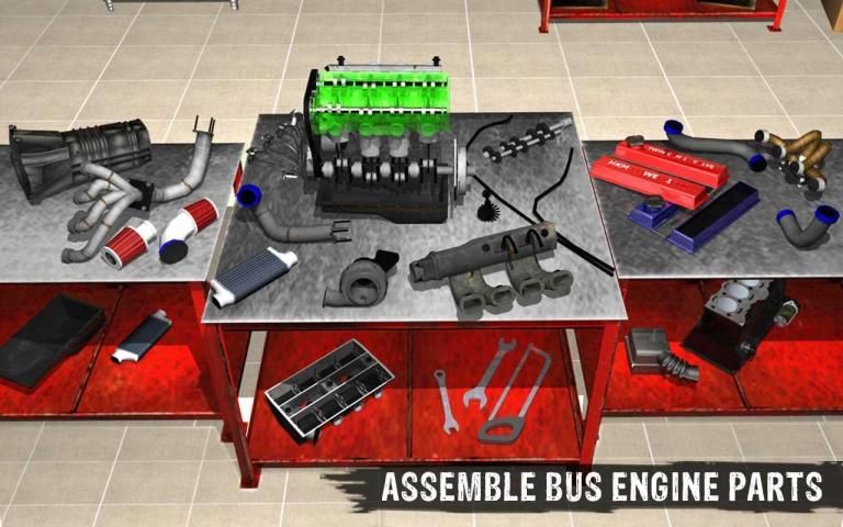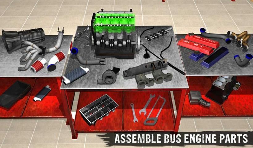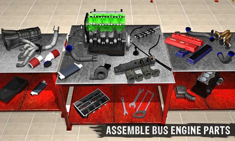 Hey lookout! Here’s your chance to be a bus engine builder and prove your distinctive experience of repairing big buses. The most unpleasant thing happens in the town - it’s a transport bus accident. Time to fix damages of faulty machines, replace tyres with stepney, mount sturdy stand with wheels or change oil and do exciting paint job. Dust off your tool box and become custom bus & auto mechanic manager. City bus is facing some engine problems. Here you have to rebuild engine and remove all defects to again start the road journey. For aligning engine parts you need expert service station worker and car builder skills.