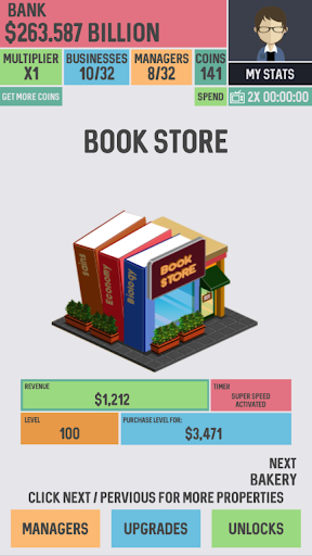 - 32 Managers to run the businesses for you on auto pilot - Earning you money while you are away from the game!