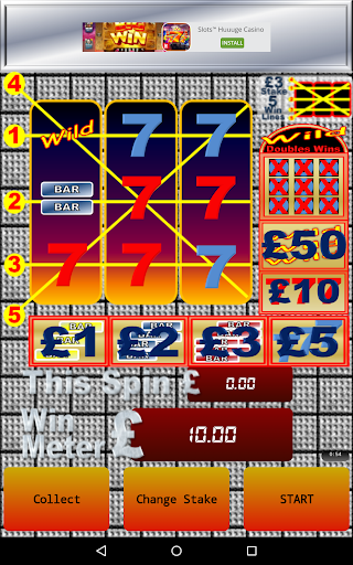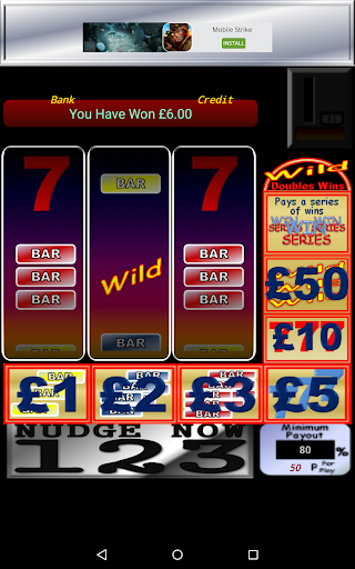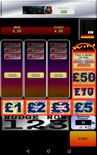 With real life percentage payout, and behaviours. The machine is presently set to 50p per play and pays out 80% of everything you put in.