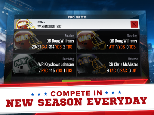 Fill your roster with the most memorable players in NFL football history! Sign your favorite QB, RB, and LB from today’s teams… sign your favorite WR, DE and TE from classic teams… sign players that match your playbook strength… sign any player you want!