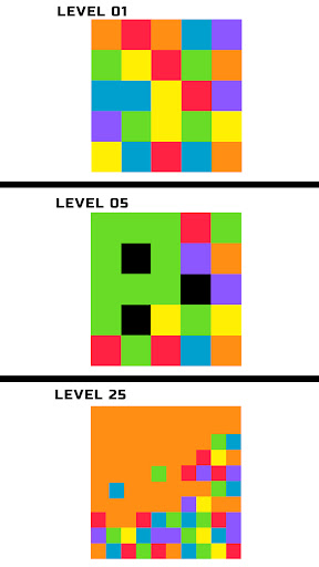 With only 1 color fill in the grid to win. Welcome to Flood it Chroma, a simple and efficient brain teaser. Try to dive in this game and you will find a dangerous time-killer for your daily travels. Its simple and colorful design is sure to charm you as you solve elegant puzzles.