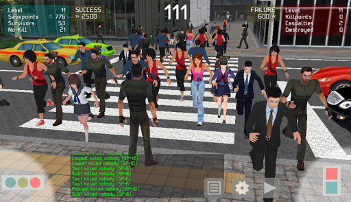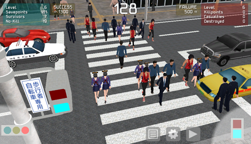 Your objective is to earn 'Savepoint' by letting pedestrians and cars pass safely.