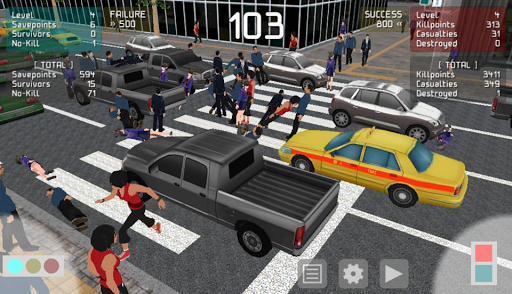Your objective is to earn 'Killpoint' by killing pedestrians and destroying cars.