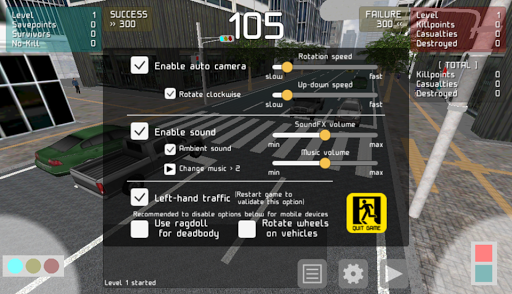 To quit the game, tap 'QUIT' button on the configuration menu. The level applied in this mode is the lower level you have achieved in the both Good and Evil modes.