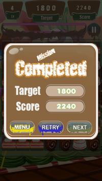 match the same color cake (at least 3 same cake), you pass the challenge when you get requiring scores at each levels.