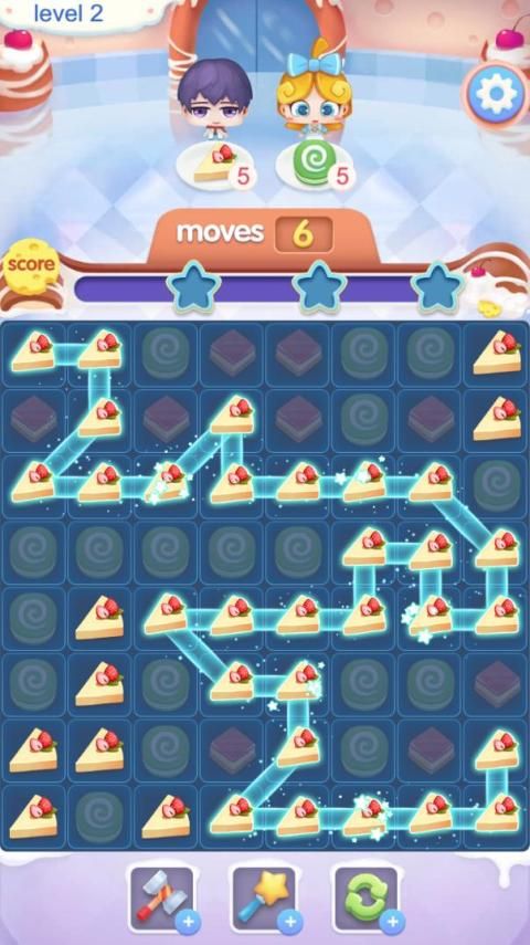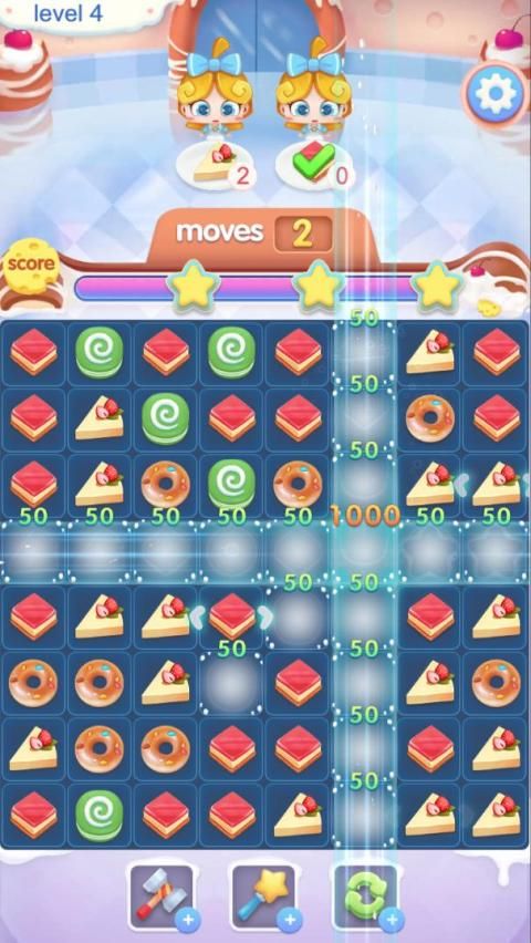 It’s a simple 3-match game, you’ll just need to merge the specified amount of cakes right in the stated moves. It’s also very easy to operate, just merge the cakes with the same pattern, even available for the diagonal.