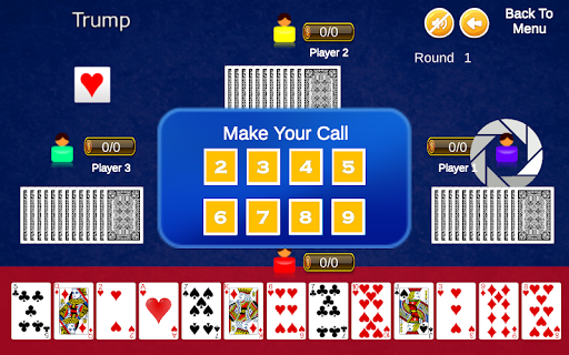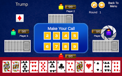 This is a 4 player game in which goes on for 5 rounds. In every deal the players are dealt 13 cards each (13 x 4 = 52). After each deal, all players make a call on how many hands they can secure in the game. The minimum call can be 2 and maximum 9.