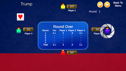 After the round is complete the score is given to players depending on whether they secured more than, less than or equal to the call they had made.