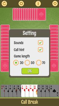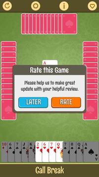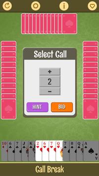 Call break classic card game free is a addictive and popular card game of tricks, trumps and bidding which is popular in India,Bangladesh and Nepal. Call break seems to be related to the North American game Spades and asian card game game call bridge.This game - Call break is played using a standard international 52-card pack. The cards of each suit rank from high to low A-K-Q-J-10-9-8-7-6-5-4-3-2. Spades are permanent trumps: any card of the Spade suit beats any card of any other suit.Deal and play are counter-clockwise.To succeed in Call break, a player must win the number of tricks called, or more trick than the call. If a player succeeds, the number called is added to his or her cumulative score. Otherwise the number called is subtracted.