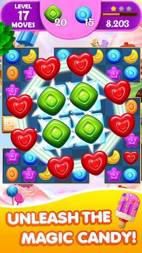- Swap and match more than 3 identical candies to crush