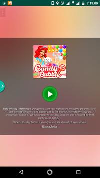 Indulge your sweet tooth and get addicted to this sugary cute Bubble Shooter - free of any calories! Match at least 3 candy bubbles of the same type to pop them. Try to drop big candy clusters to earn delicious bonus points and complete the level's goal to move forward.