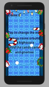 You have to avoid the candy canes and the gnomes, as they will destroy the snowballs on the ring. You have to tap and the snowballs will change their direction of movement. Simple but hard! You have to build your highscore with picking up the christmas ornaments as coins, the more you pick up the higher your score!