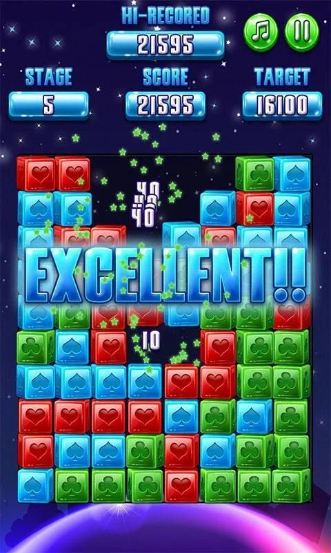 Tap on two or more adjacent blocks to make them burst, and try to scoring as many points as possible!