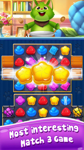 There is no jelly in this game but we do have candy filled tasty gingerbread men, candy bows, beautiful bells and beautifully decorated levels. You can help to Xmas games heroes by your savvy and solving difficult, but very interesting match 3 puzzles of Santa games. Do not forget to feed the hungry pets: reindeer Dasher, Dancer, Prancer, Vixen, Comet, Cupid, Donner, and Blitzen. Their favourite sweets are the tasty chocolate, vanilla cookies and sweet candy.