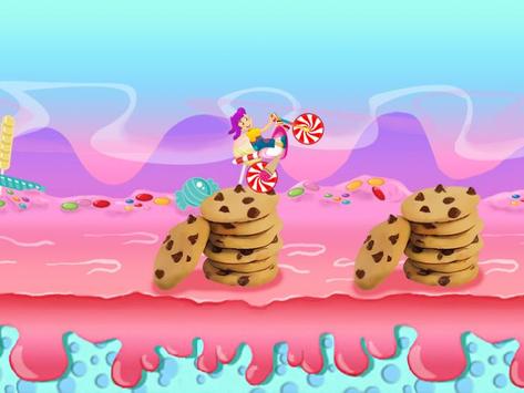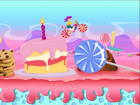 Prove your skills in many challenging levels. You have to be careful and always maintain your balance in order not to crash, or you will have to restart the level all over again. Try to be as fast as possible because time is what determines the score. You will have to pass over candy, licorice,toffee and jars of sweet candy.