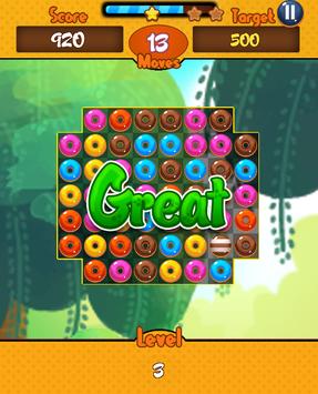 Swap candy donuts and match at least 3 of them in same kind to have a crush. You will have limited moves in every level and you will have to reach a goal in every level.