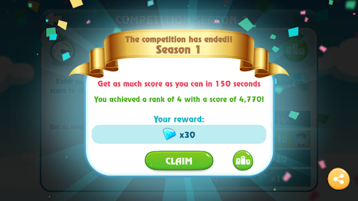 The competition gameplay allows you to challenge your brain and reaction speed! Just crush the candy as fast as you can. Earn higher score and rush to the very top at the event leaderboard to become the true Candy Legend!